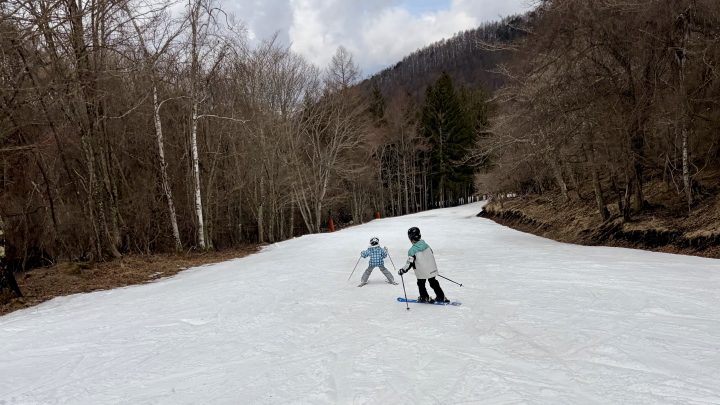 春スキーの雪が減ってる時期で