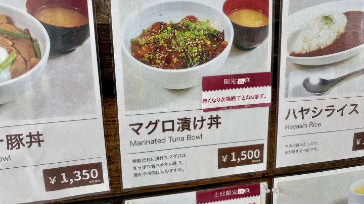 私はマグロ漬け丼です(1,500円)
