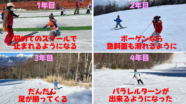 子供がスキーを始めて4シーズン目でパラレルターンで滑れるようになりました