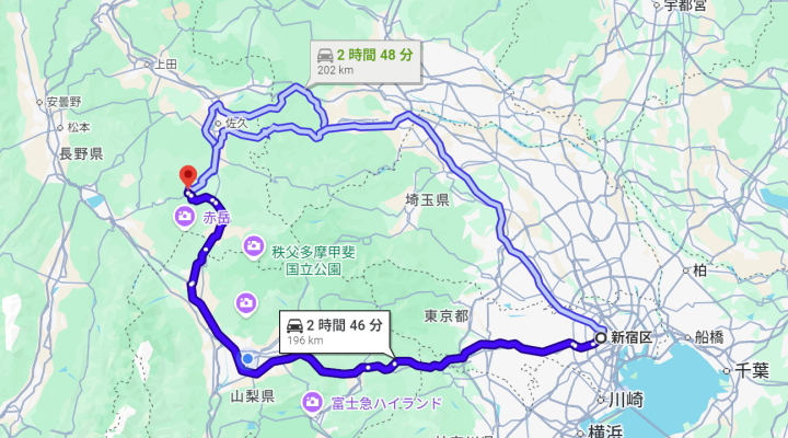 中央道経由でのルートを
